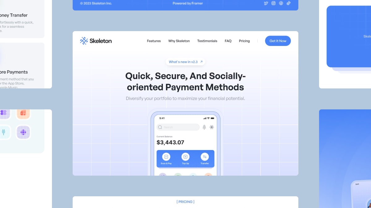 Skeleton stands out as an ideal Framer no-code template crafted specifically for the creation of Landing pages, perfect for Framer mini plan.